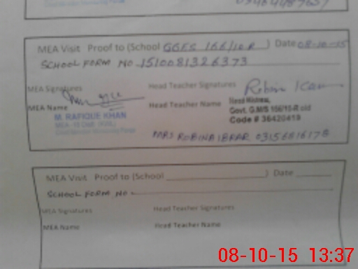 | Certified that this School was Inspected by the Undersigned MEA/DMO Today and the Information Stated Above is as Per Record. | |||||