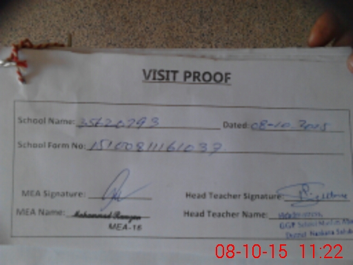 | Attendance Register | Head Teacher | MEA with School | Visit Proof |