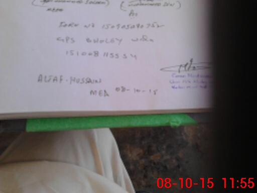 | Monitoring Date: 08-10-2015 | Start Time: 08-10-2015 11:15 AM | End Time: 08-10-2015 11:57 AM | Name of MEA: Al**** Hu**** BN**** | |
