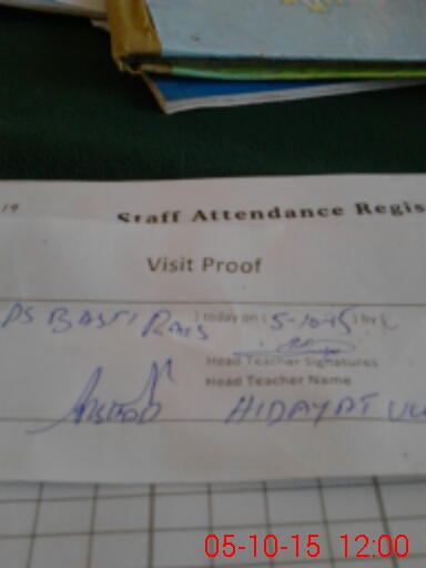 | Attendance Register | Head Teacher | MEA with School | Visit Proof |