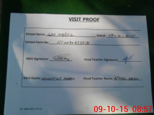 | Attendance Register | Head Teacher | MEA with School | Visit Proof |