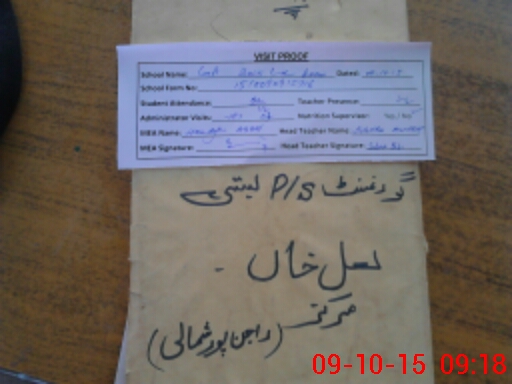 | School Visited by School Health & Nutrition Supervisor (No. of Visits) | Name1: | Javed Maqsood | Name2: | ||