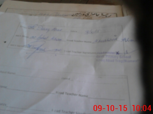 | Name: MIs**** Al**** Sh**** Designation: (School Headmaster's/Headmistress's) PST Phone/Cell Number: 03**** |