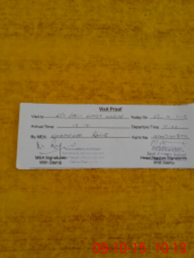 | Monitoring Date: 09-10-2015 | Start Time: 09-10-2015 10:08 AM | End Time: 09-10-2015 10:25 AM | Name of MEA: Mu**** Ra**** | |