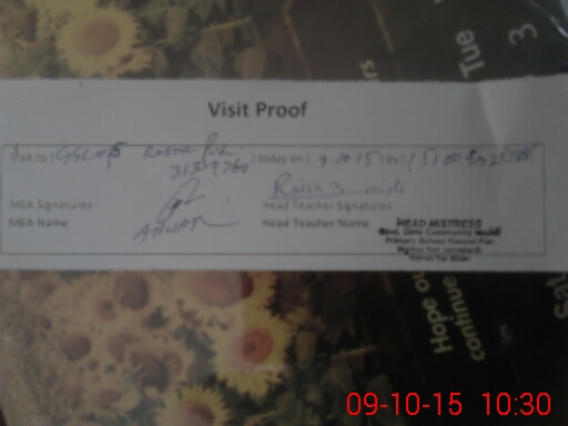 | Attendance Register | Head Teacher | MEA with School | Visit Proof |