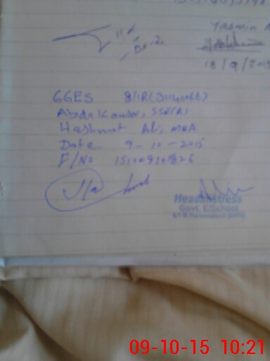 | Name: AB**** KO**** Designation: (School Headmaster's/Headmistress's) S.S.T Phone/Cell Number: 03**** |