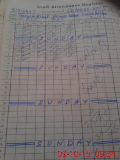 | CNIC | Full Name | Designation | R/C | Absence During Last Calender Month |