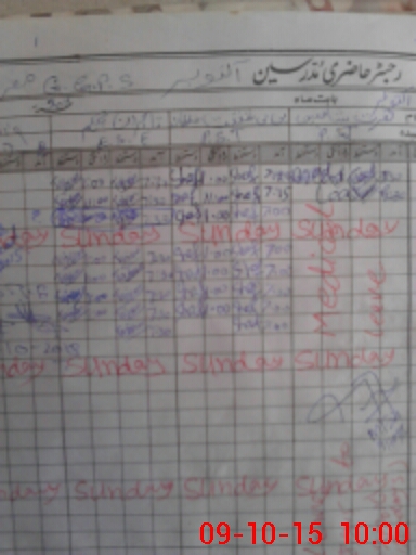 | CNIC | Full Name | Designation | R/C | Absence During Last Calender Month |