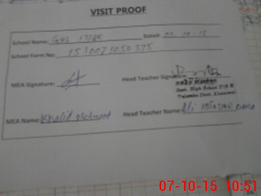 | EMIS Code: 36430018 | Name of School: GHS 17/8-R, TULAMBA | |||