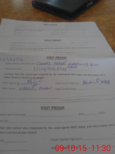 | Attendance Register | Head Teacher | MEA with School | Visit Proof |