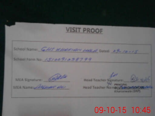 | EMIS Code: 35430019 | Name of School: GHS KHARIAN WALA | |||