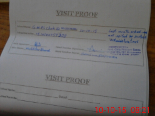 | Remarks (Use Separate Page if Required): Last month school was not visited bydistrict administrator | |||||