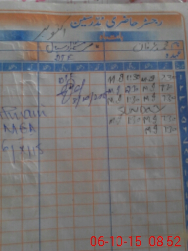 | Monitoring Date: 06-10-2015 | Start Time: 06-10-2015 08:45 AM | End Time: 06-10-2015 08:56 AM | Name of MEA: M.Ak**** Al**** | |