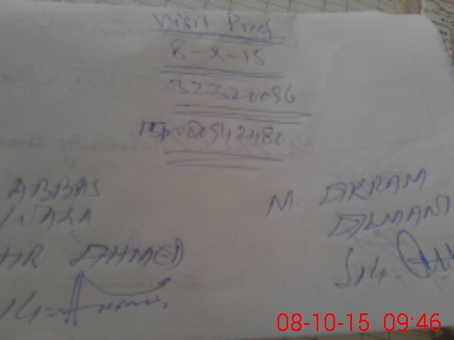| Monitoring Date: 08-10-2015 | Start Time: 08-10-2015 09:38 AM | End Time: 08-10-2015 10:05 AM | Name of MEA: M.Ak**** Al**** | |