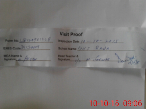 | EMIS Code: 34130009 | Name of School: GHS RAJA | |||