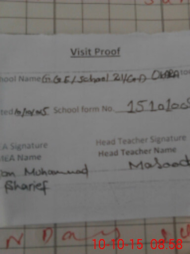 | Attendance Register | Head Teacher | MEA with School | Visit Proof |