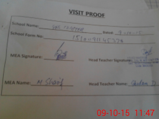 | Attendance Register | Head Teacher | MEA with School | Visit Proof |