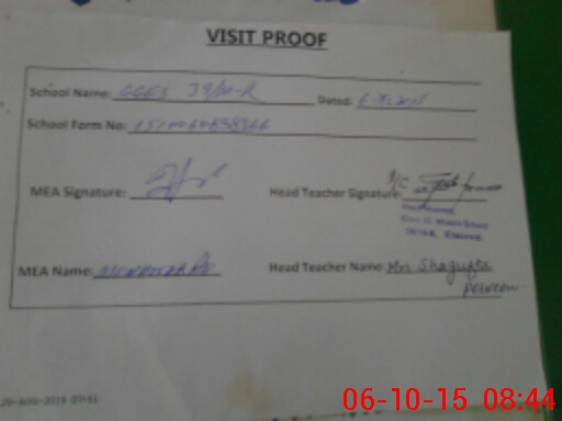 | Certified that this School was Inspected by the Undersigned MEA/DMO Today and the Information Stated Above is as Per Record. | |||||