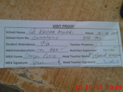 | Attendance Register | Head Teacher | MEA with School | Visit Proof |