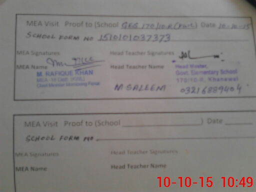 | Certified that this School was Inspected by the Undersigned MEA/DMO Today and the Information Stated Above is as Per Record. | |||||