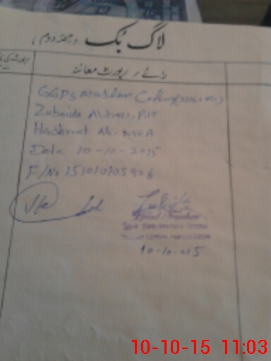 | Name: Zu**** Sh**** Designation: (School Headmaster's/Headmistress's) PST Phone/Cell Number: 03**** |