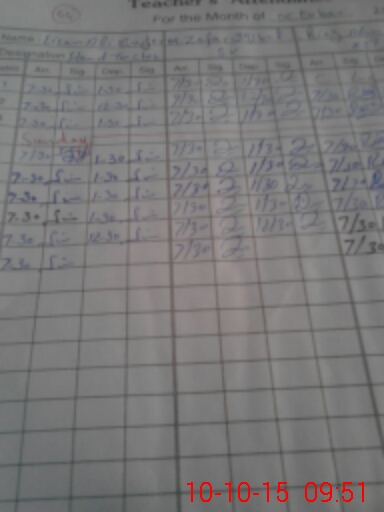 | Monitoring Date: 10-10-2015 | Start Time: 10-10-2015 09:25 AM | End Time: 10-10-2015 10:24 AM | Name of MEA: Mu**** Ja**** An**** | |