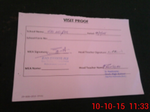 | Attendance Register | Head Teacher | MEA with School | Visit Proof |