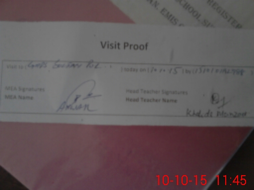 | Attendance Register | Head Teacher | MEA with School | Visit Proof |