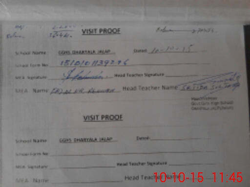 | Attendance Register | Head Teacher | MEA with School | Visit Proof |