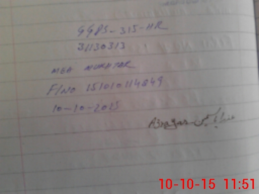 | Monitoring Date: 10-10-2015 | Start Time: 10-10-2015 11:27 AM | End Time: 10-10-2015 11:55 AM | Name of MEA: Mu**** ah**** BN**** 29 | |