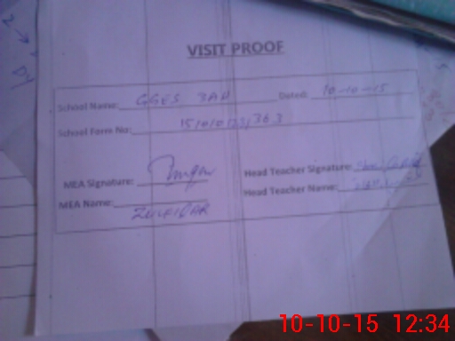 | Attendance Register | Head Teacher | MEA with School | Visit Proof |