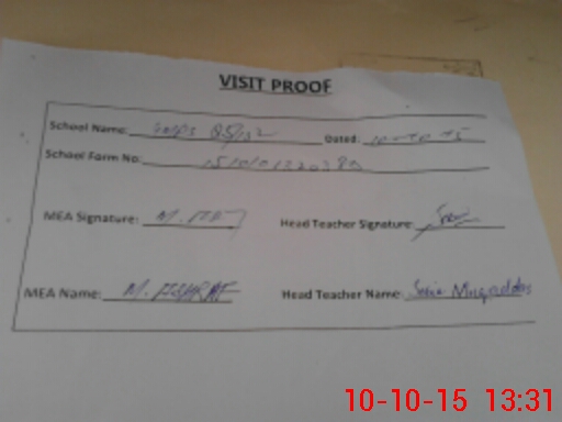 | Attendance Register | Head Teacher | MEA with School | Visit Proof |