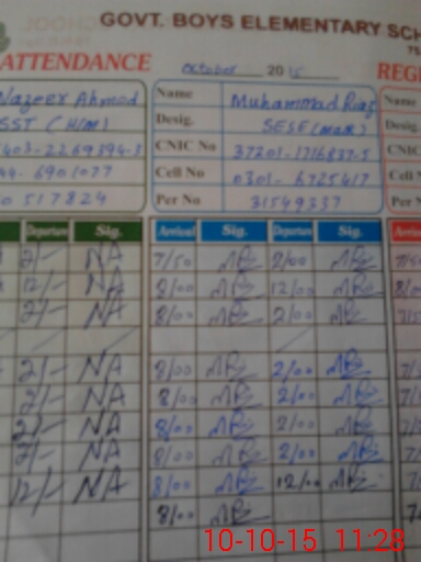 | CNIC | Full Name | Designation | R/C | Absence During Last Calender Month |