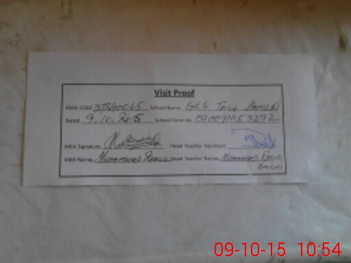 | Attendance Register | Head Teacher | MEA with School | Visit Proof |