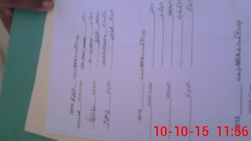 | Monitoring Date: 10-10-2015 | Start Time: 10-10-2015 11:22 AM | End Time: 10-10-2015 11:57 AM | Name of MEA: Za**** Iq**** BN**** | |