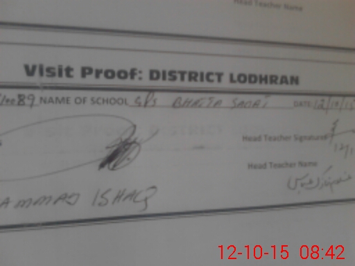 | District: LODHRAN | Tehsil: LODHRAN | Markaz: BHUTAJI - MALE | Level: Primary | |