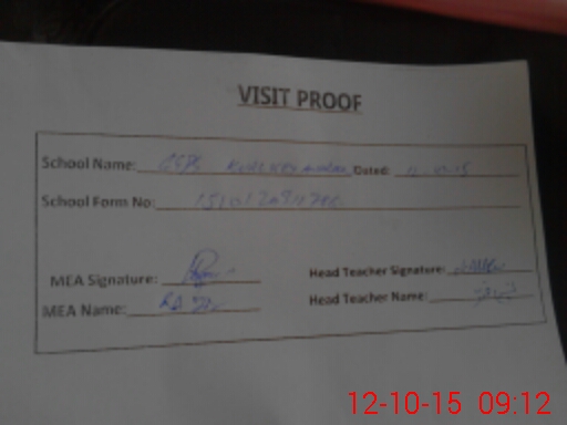 | Attendance Register | Head Teacher | MEA with School | Visit Proof |