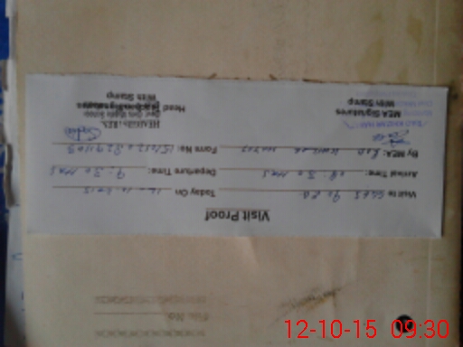 | Monitoring Date: 12-10-2015 | Start Time: 12-10-2015 08:29 AM | End Time: 12-10-2015 09:31 AM | Name of MEA: Kh**** Ha**** (R**** | |