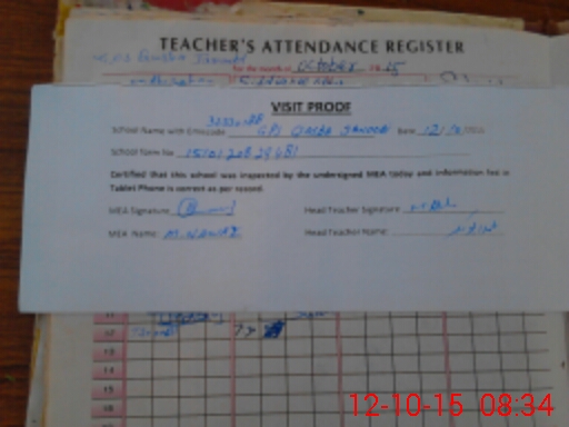 | Attendance Register | Head Teacher | MEA with School | Visit Proof |