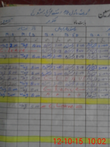 | CNIC | Full Name | Designation | R/C | Absence During Last Calender Month |