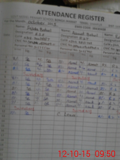 | CNIC | Full Name | Designation | R/C | Absence During Last Calender Month |