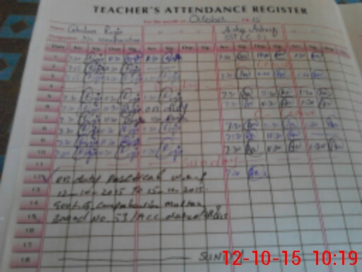 | 36**** | Gh**** Ru**** | S.S.E.(CHEM-BIO) | 1 | 0 | 0 | 0 | 0 | 0 | 0 | 0 | 1 | Exam Duty | |