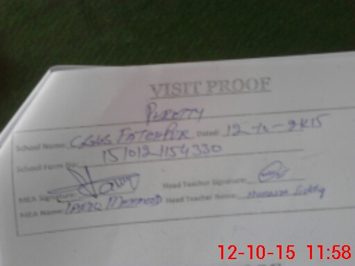 | Attendance Register | Head Teacher | MEA with School | Visit Proof |