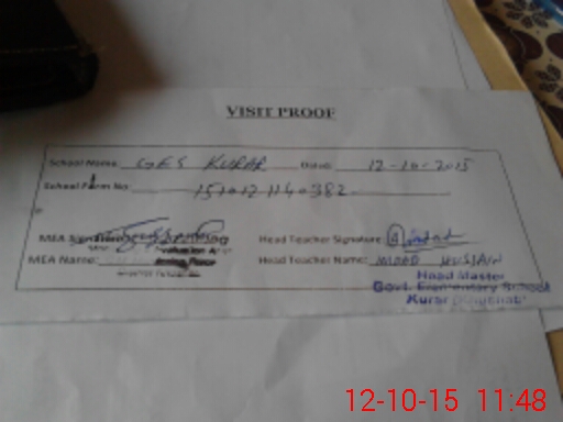 | Attendance Register | Head Teacher | MEA with School | Visit Proof |