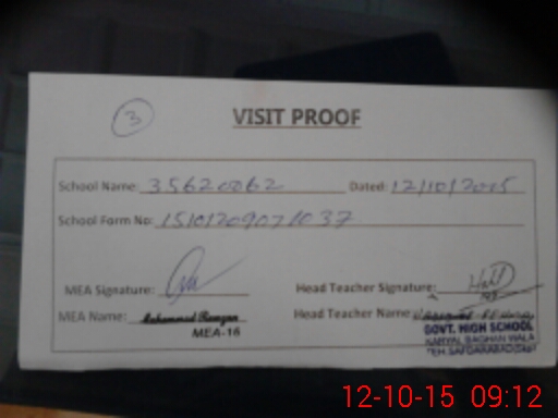 | Attendance Register | Head Teacher | MEA with School | Visit Proof |