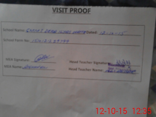 | Attendance Register | Head Teacher | MEA with School | Visit Proof |