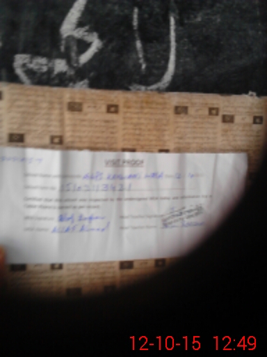 | Monitoring Date: 12-10-2015 | Start Time: 12-10-2015 12:40 PM | End Time: 12-10-2015 01:01 PM | Name of MEA: Al**** Ah**** Li**** | |