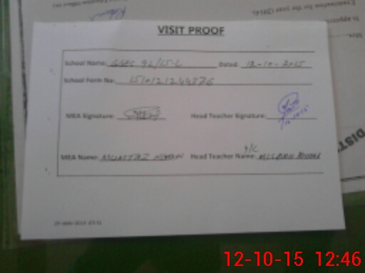 | Attendance Register | Head Teacher | MEA with School | Visit Proof |