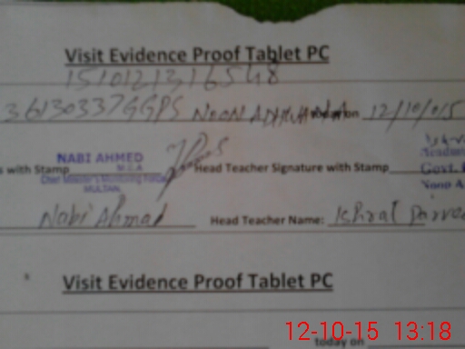 | Attendance Register | Head Teacher | MEA with School | Visit Proof |