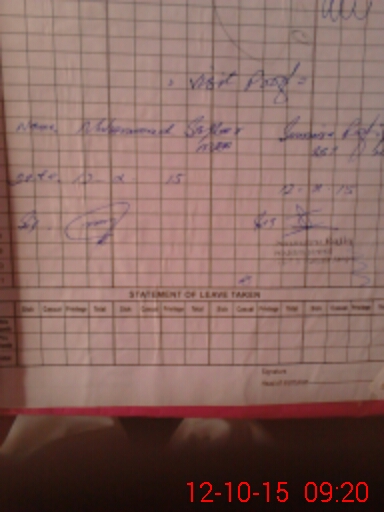 | CNIC | Full Name | Designation | R/C | Absence During Last Calender Month |